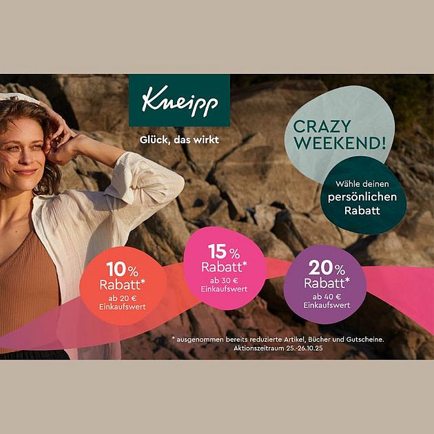 Öffnungszeiten Montag - Samstag 09:30 - 18:30 26.10.2025 (Crazy Weekend) 13:00 - 18:00 01.11.2025 (Allerheiligen) Geschlossen