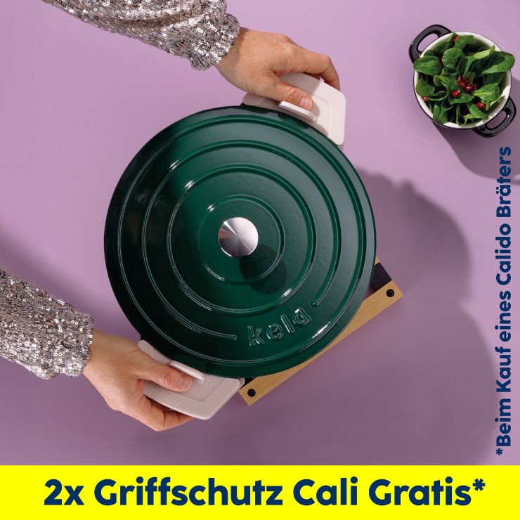 Beim Kauf eines Calido Bräters 2x Silikon Griffschutz Cali im Wert von 17,90 Euro gratis