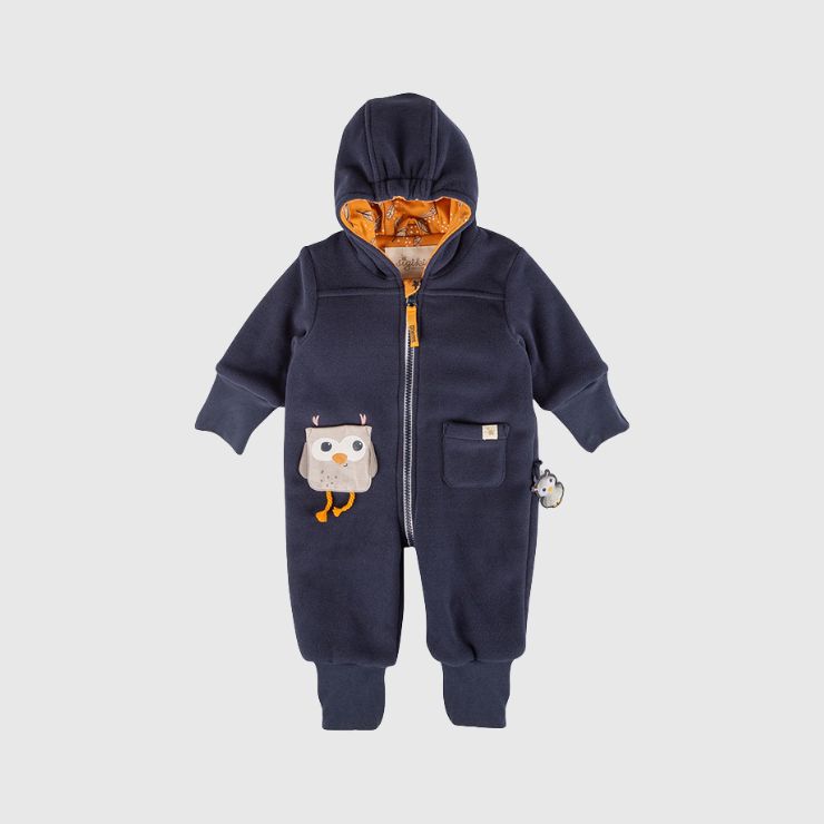 Bei diesem Fleeceoverall sind bis Gr. 80 die Beinbündchen umklappbar, und der Reißverschluss reicht herum bis über den Po für einen schnellen Windelwechsel. In Gr. 86/92 endet der Reißverschluss am Schritt. Die Ärmelbündchen sind in allen Größen umklappbar.
