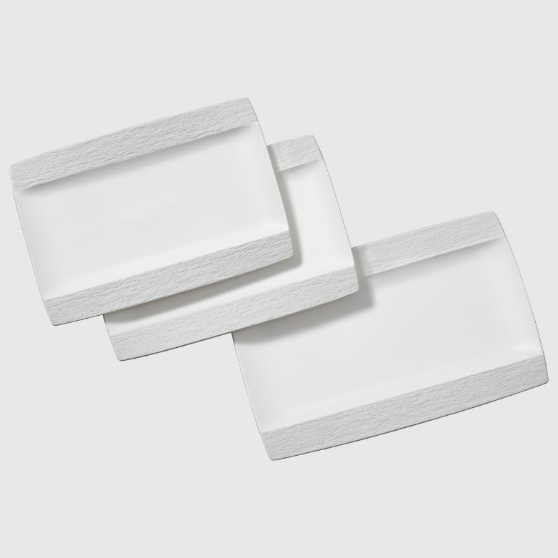 Set beinhaltet drei Servierplatten in zwei unterschiedlichen Größen Handwerklich gearbeitet Bei 1325°C gebrannt und dadurch äußerst widerstandsfähig Kratzfeste Oberfläche in seidenmatter Schieferoptik Spülmaschinengeeignet