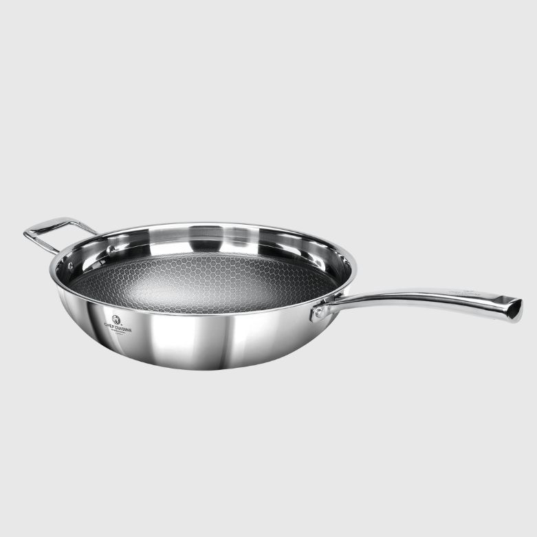Mit Keramik-Beschichtung PFAS-frei 3-lagiger Materialaufbau: 1. Edelstahl, 2. Aluminiumkern, 3. Edelstahl Ideal für scharfes Anbraten bei hohen Temperaturen Optimale Wärmeleitfähigkeit und lange Wärmespeicherung Hervorragende Antihaftbeschichtung aus Keramik mit aufgesetzten Edelstahlwaben Oberfläche äußerst kratzfest – selbst bei Verwendung von Metallutensilien Funktioniert auf allen Herdarten, bis 260 °C im Backofen verwendbar