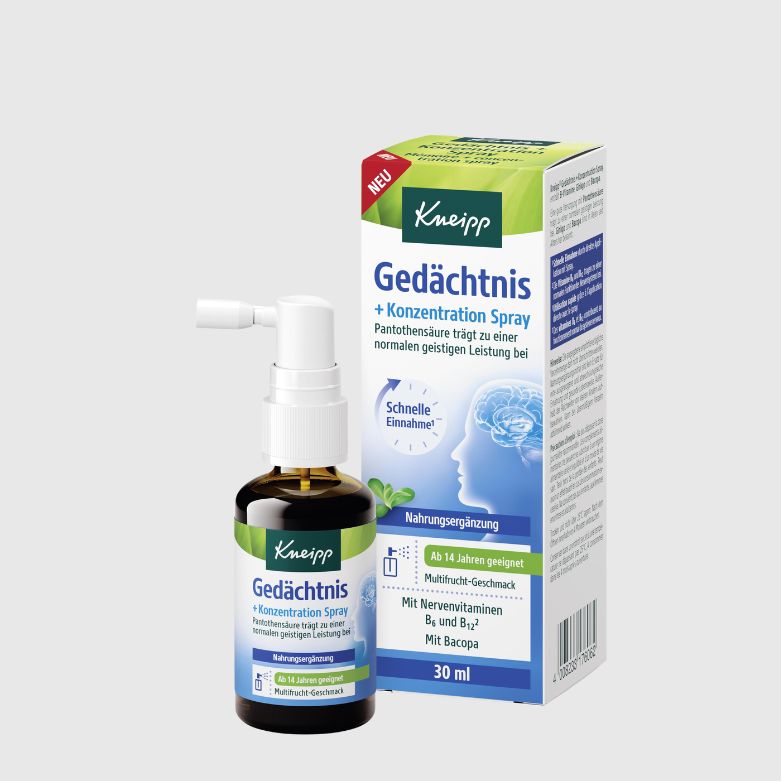Ginkgo und Bacopa sind in Asien seit Alters her bekannt. Pantothensäure trägt zu einer normalen geistigen Leistung bei Schnelle Einnahme durch direkte Applikation mit Spray Ab 14 Jahren geeignet Multifrucht-Geschmack Mit Nervenvitaminen B6 und B12 sowie mit Bacopa Gluten- und Laktosefrei