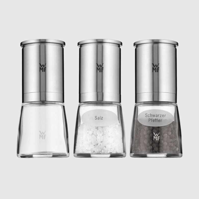 Exklusive Keramikmahlwerke: härter als Metall, lebensmittelneutral und langlebig, da sie frei von Verschleiß, Korrosion und Abrieb sind. Perfekt geeignet für Salz, Pfeffer und Gewürze. Dank der Einstellräder lassen sich die Mahlstärken stufenlos von fein bis grob einstellen.