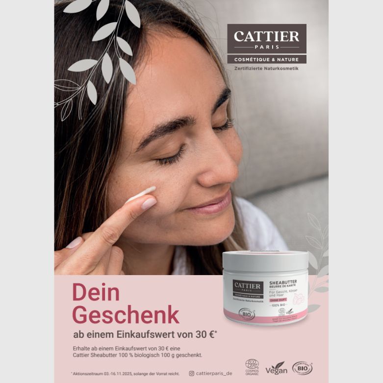 Ab 30€ Einkaufswert erhält der Kunde eine Cattier Sheabutter 100% biologisch 100 g geschenkt.