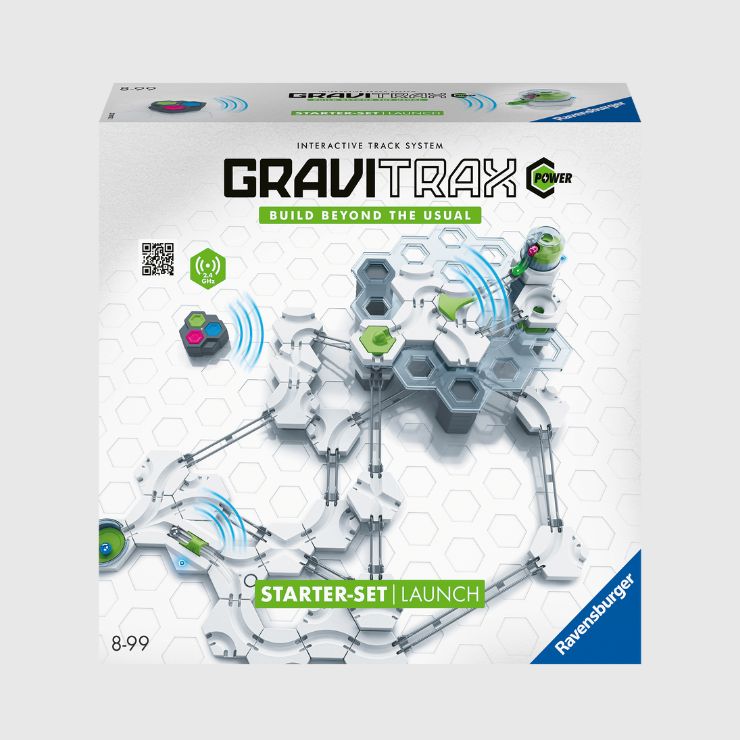 Im Launch Starterset verbinden die elektronischen GraviTrax Power-Elemente Starter und Ziel per Funk Anfang und Ende der Kugelbahn. Mit dem Controller (Fernbedienung) kann der Spieler den Lauf der Kugel aktiv beeinflussen