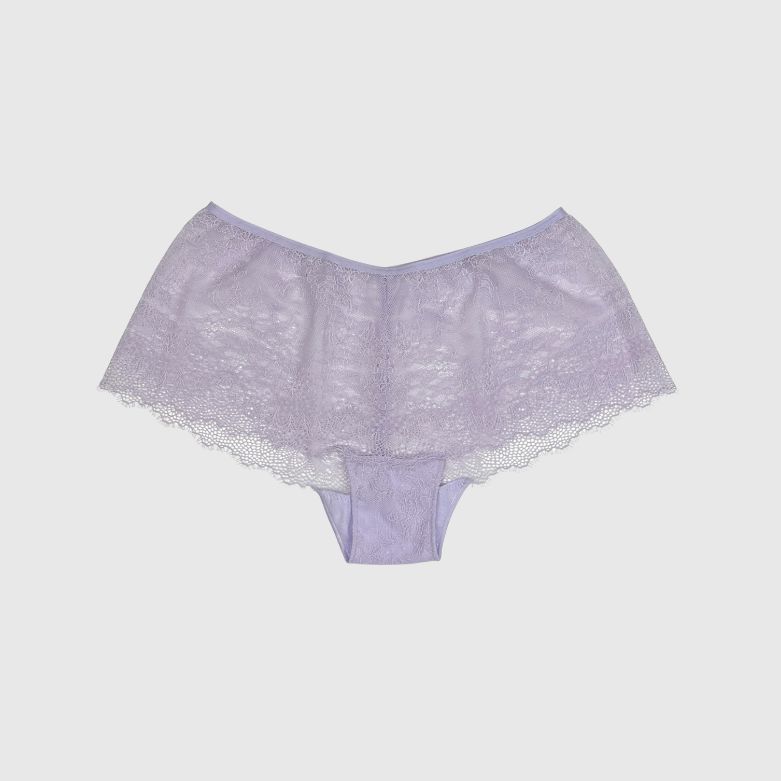 in Farbe light lavendel- verführerische, weiche Spitze- komfortabler Schnitt- softes Material- angenehmer Tragekomfort- hüftiger Sitz- Po bedeckend- mit Baumwollzwickel- angenehmer Tragekomfort ohne Einengen durch flexibles, weiches Material- sanft zur Haut für ein unspürbares Tragegefühl- 90% Polyamid- 10% Elasthan