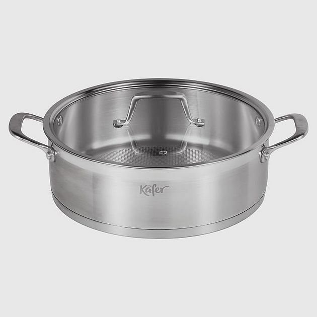 3-lagig emailliert Geeignet für alle gängigen Herdarten Energieeffizientes Kochen durch hervorragende Wärmespeicherfähigkeit Ideal zum Anbraten von Fleisch und Gemüse Erstklassige Eigenschaften für die Zubereitung von Speisen im Backofen (bis zu 400 °C) Massives Gusseisen, Volumen 6,7 Liter Maße: L 34 x B 26 x H 13,5 cm Integriertes Deckelthermometer