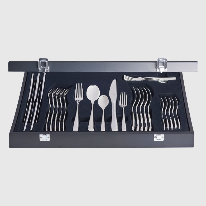 Bestehend aus: 6 Menülöffel 6 Menügabeln 6 Menümessern 6 Kuchengabeln 6 Kaffeelöffeln
