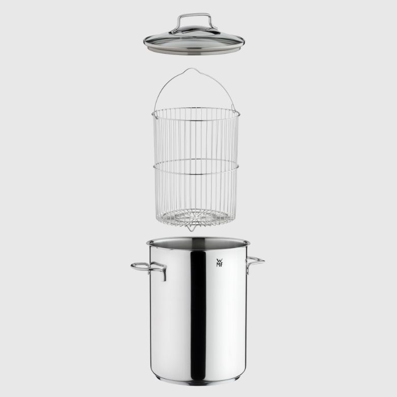 Der perfekte Topf für perfekt gekochten Spargel Edler Spargel gelingt am besten in einem schlanken, hohen Topf, wie dem speziellen Spargeltopf mit 16 cm Durchmesser von WMF. Denn darin steht der Spargel aufrecht, idealerweise mit den Spitzen nach oben, und kann so nicht brechen.Gefertigt aus strapazierfähigem und pflegeleichtem Cromargan®: Edelstahl Rostfrei, Spülmaschinenfest