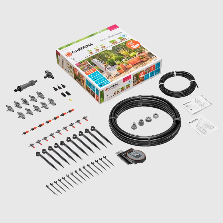 Präzise Bewässerung von Topfpflanzen und Pflanztrögen mit Tropfern - Mengenregulierend - Kein Nachtropfen beim Ausschalten des Wasserhahns inklusive Bewässerungssteuerung Flex