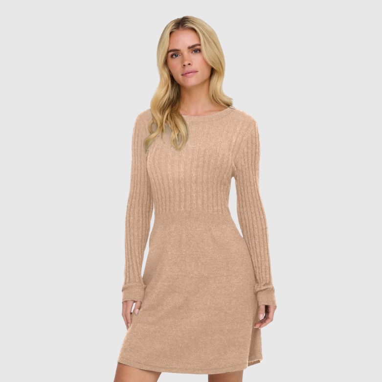 Bereiten Sie Ihre Garderobe auf die kalten Tage mit einem schönen Strickkleid vor, das perfekt zu Strumpfhosen oder Jeans passt. Flachstrick ist ein Strickstoff, der sich durch Flexibilität, Komfort und eine klare Optik auszeichnet. In Farben grau und beige erhältlich.