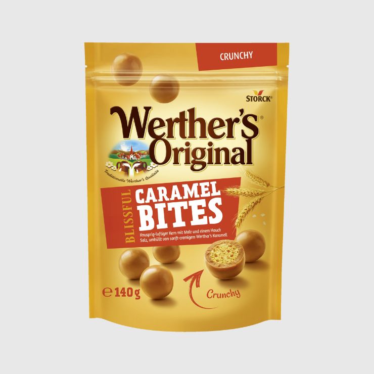 Knusprig-luftiger Kern mit Malz und einem Hauch Salz, umhüllt von sanft-cremigem Wether's Karamell.