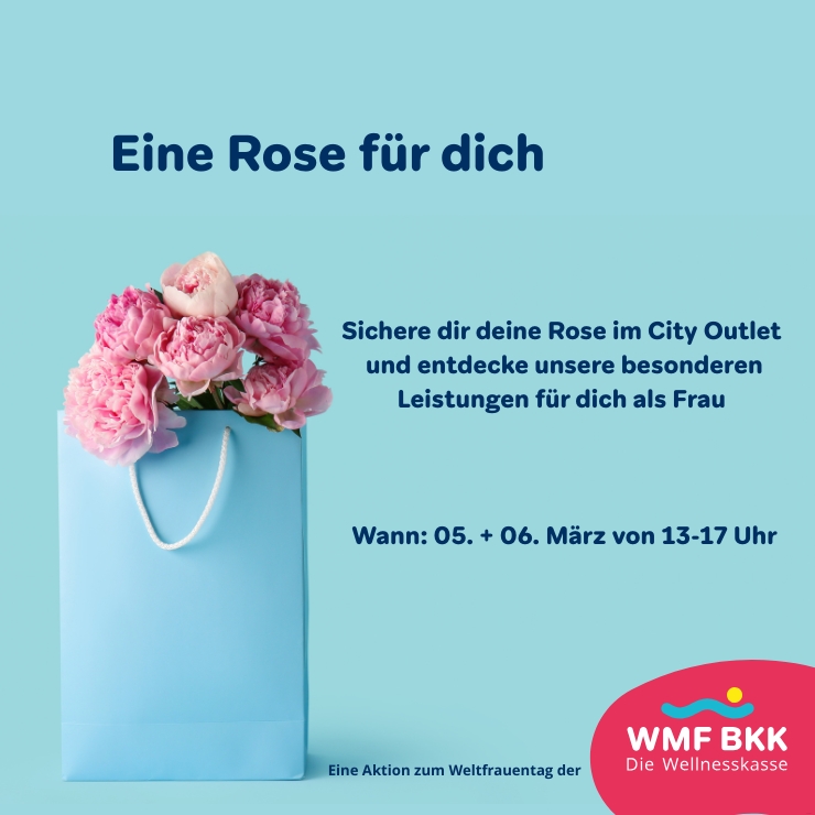 Am 5. und 6. März von 13 bis 17 Uhr verschenkt die WMF BKK im City Outlet Geislingen Rosen. Zudem gibt es auch die Möglichkeit, die besonderen Leistungen für Frauen kennenzulernen. Kommen Sie vorbei- wir freuen uns auf Sie!